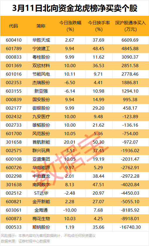 今日龙虎榜现身个股中,9股获北向资金净买入。净买入居首的是华胜天成,金额为6609.69万元;宁波建工、粤桂股份、双欣材料等紧随其后,净买入金额均超2000万元。